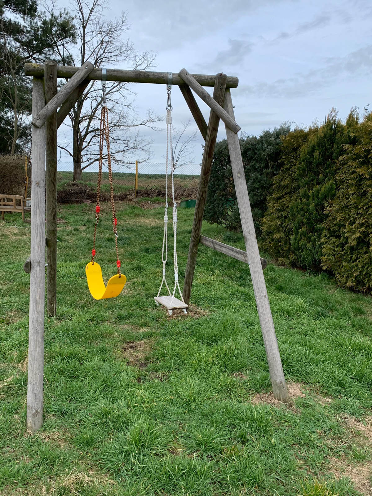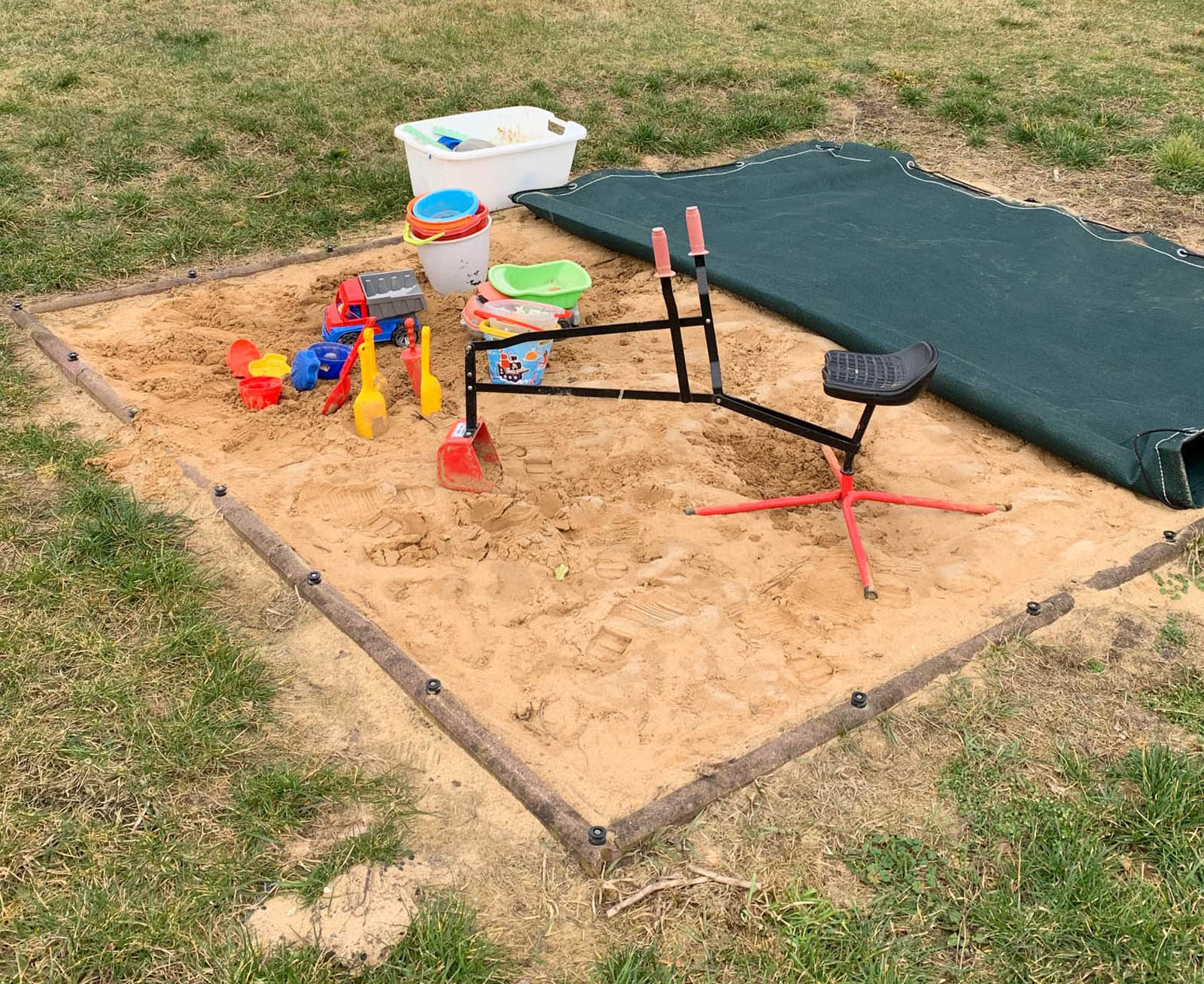 - Großer Sandkasten mit Sandspielzeug, Schaukel, Kinderfahrzeugen