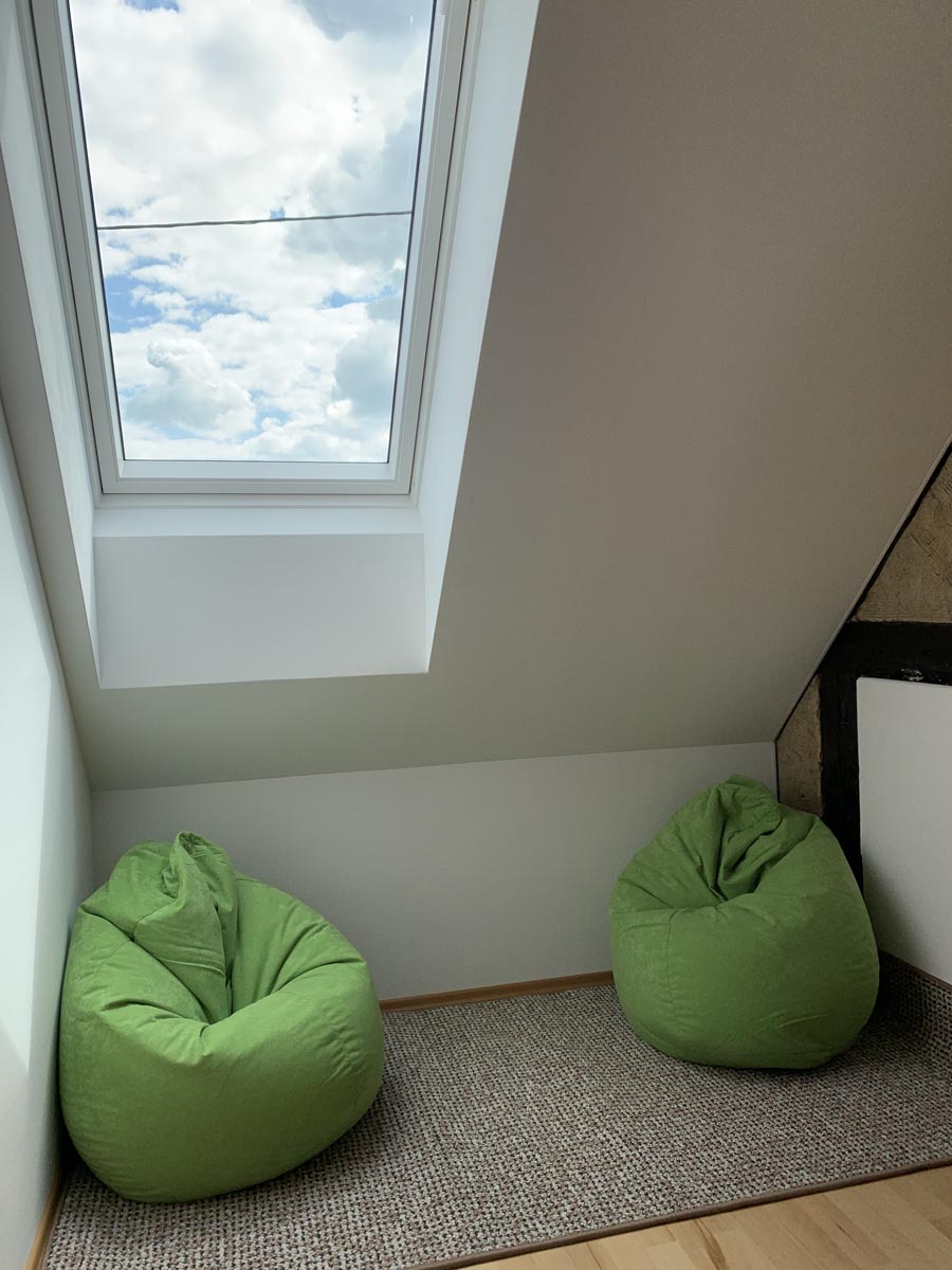 Wir haben uns in der Einrichtung und Ausstattung von den Bedürfnissen großer und kleiner Menschen leiten lassen und so viel wie möglich von dem eingebracht, was wir uns selbst von einer Unterkunft wünschen. Unsere Kinder nannten Haus und Garten unser Bullerbü als sie es zum ersten Mal sahen, in Erinnerung an die heiß geliebten Bücher und weil es ihren Vorstellungen von damals sehr nahekam. Dabei haben wir es belassen.