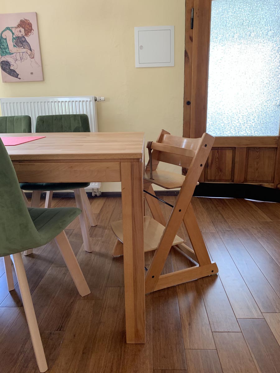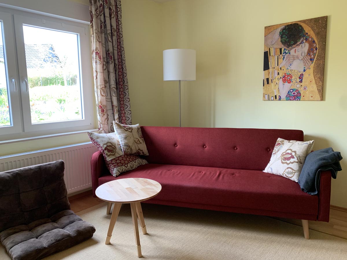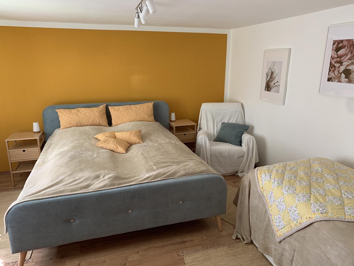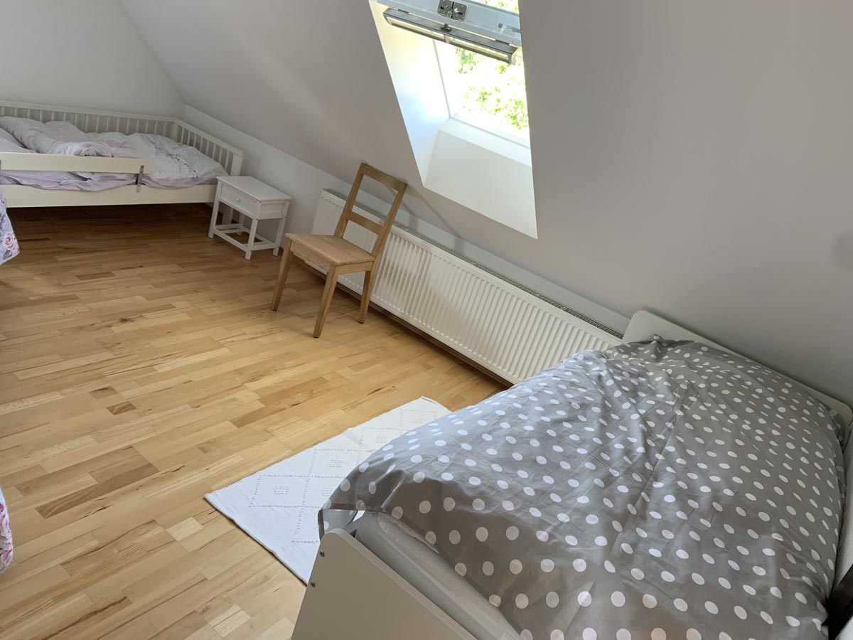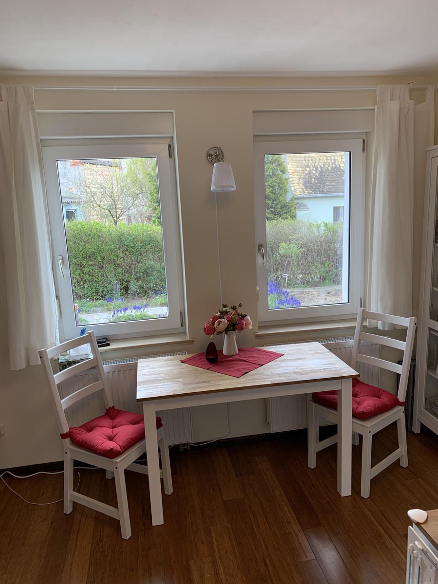 Unser Haus wurde von 2014-2018 umfassend saniert und liegt eingebettet zwischen Feldern und Wiesen. Im Erdgeschoß gibt es einen großen Essbereich mit angrenzendem Wohnbereich, eine offene Küche sowie zwei Schlafzimmer und zwei Bäder. Im Obergeschoss sind noch einmal zwei Schlafzimmer und eine kleine Lümmelecke vorhanden. Die Bäder haben Fußbodenheizung, ein Bad verfügt über eine offene Dusche.