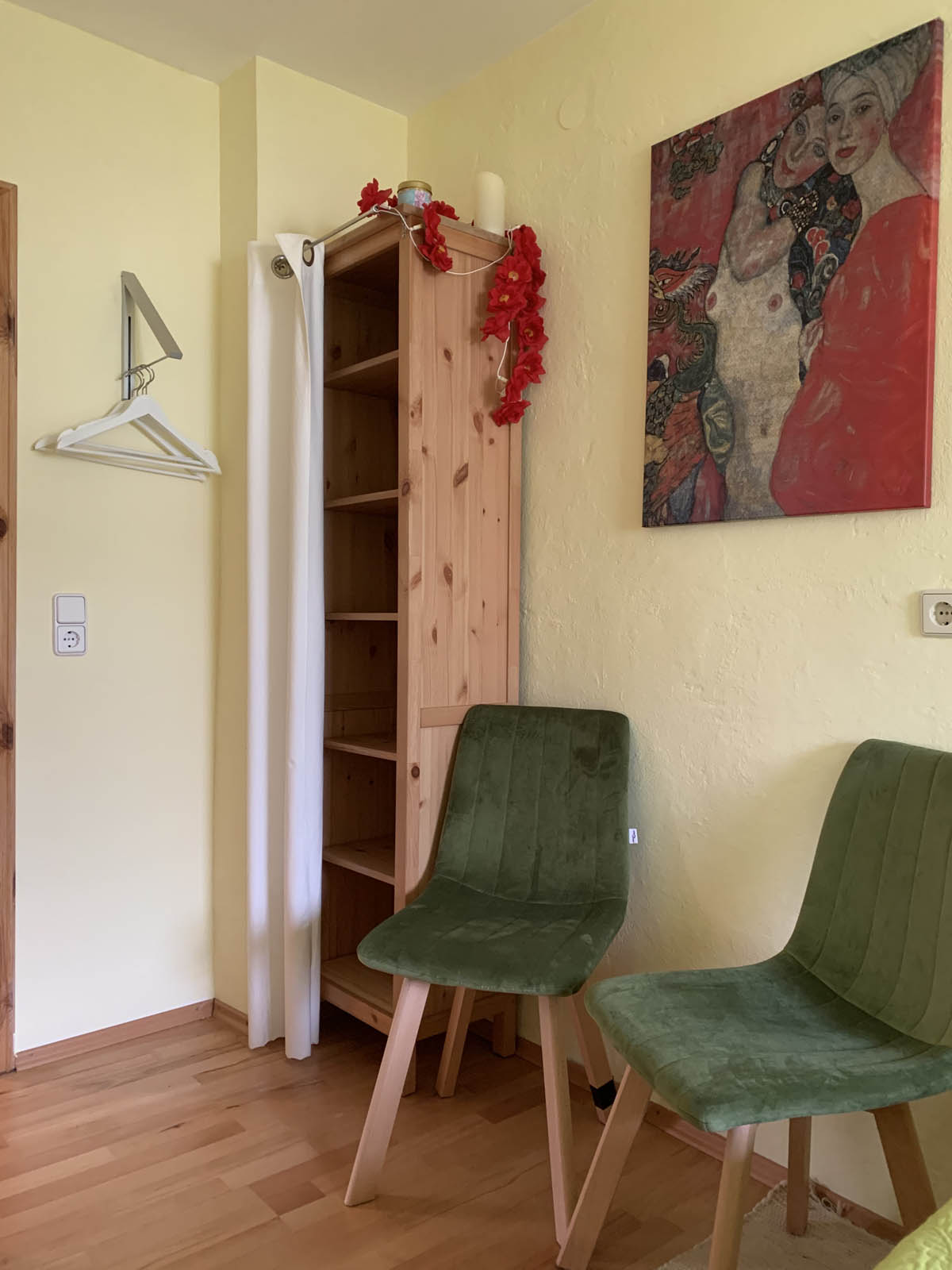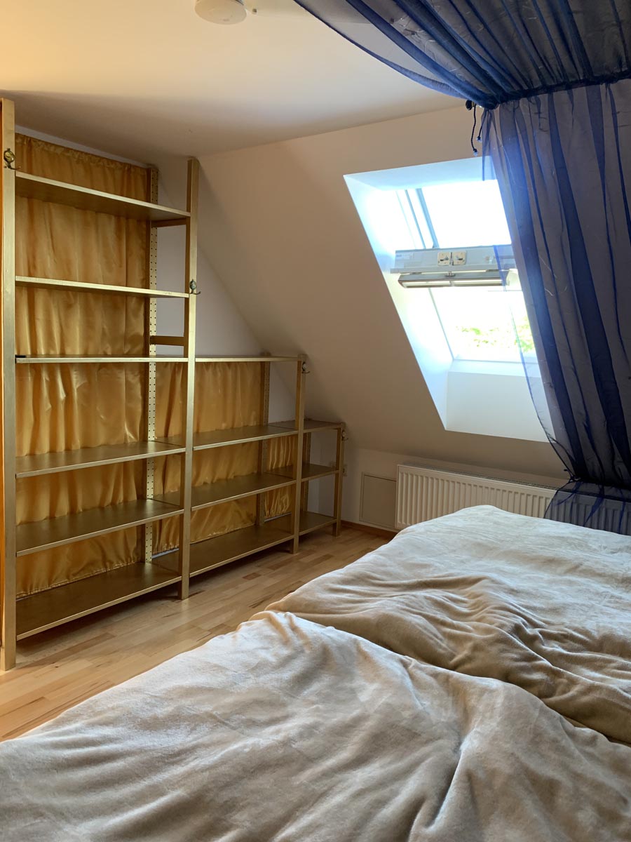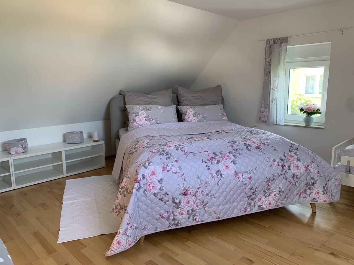 Jedes Zimmer ist an mindestens einem Fensterflügel mit Mückenschutz ausgestattet. Alle Fenster können über Rollläden oder Innenrollos richtig gut verdunkelt werden. Steckdosen, Schranktüren und die Treppe zum Dachgeschoss sind kindergesichert. In allen Wohn- und Schlafräumen sind Rauchmelder installiert.
