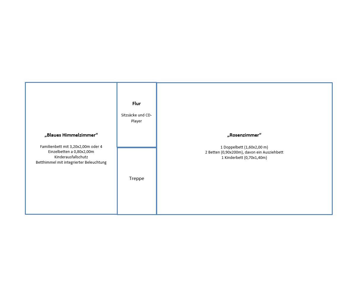 Es hat ca.150qm Wohnfläche auf zwei Etagen. Es gibt einen großen gemeinsamen Essbereich, 4 Schlafzimmer, 2 Bäder, weitere Betten für kleine Kinder, 2 zusätzliche Schlafplätze im Wohnzimmer bei Bedarf und eine Sauna.
