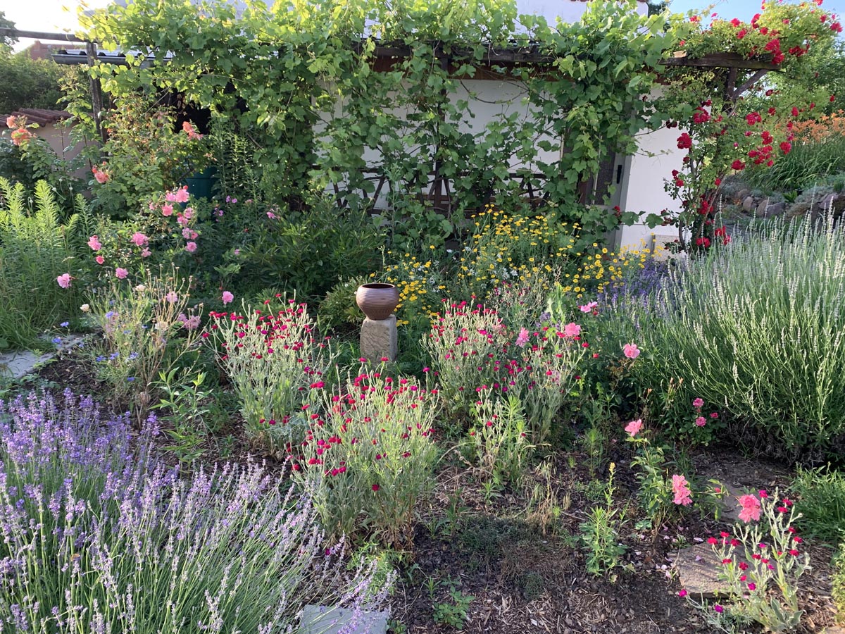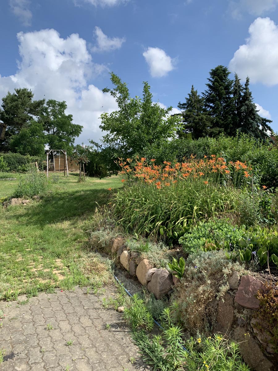 Ein ca. 2000qm großer Garten lädt zum Erkunden ein; denn irgendetwas blüht immer. Man kann die Seele baumeln lassen, Spielen, Grillen, Feuer machen... Viele Kräuter, die vor allem im Küchengarten wachsen, oder auch Früchte, wie unser Wein, am Haus können gern genascht und verschnippelt werden.