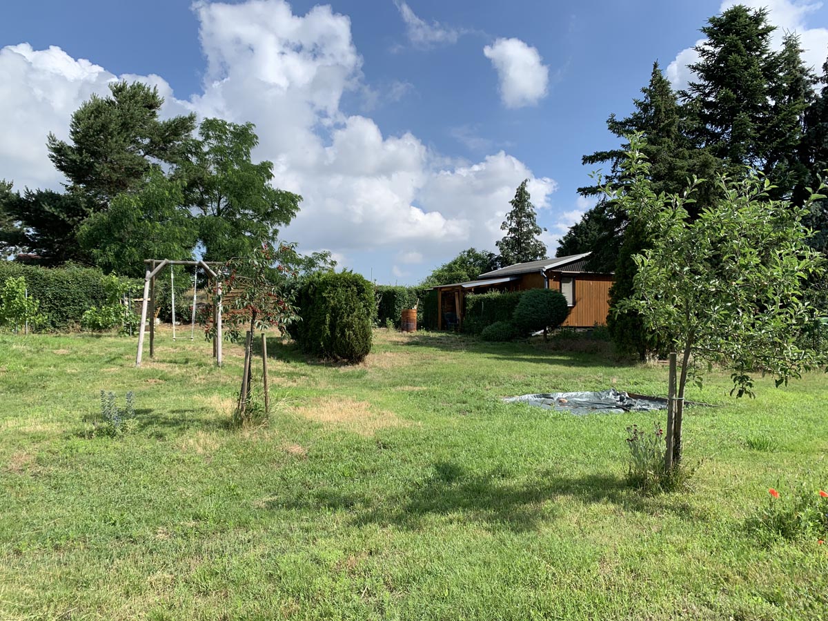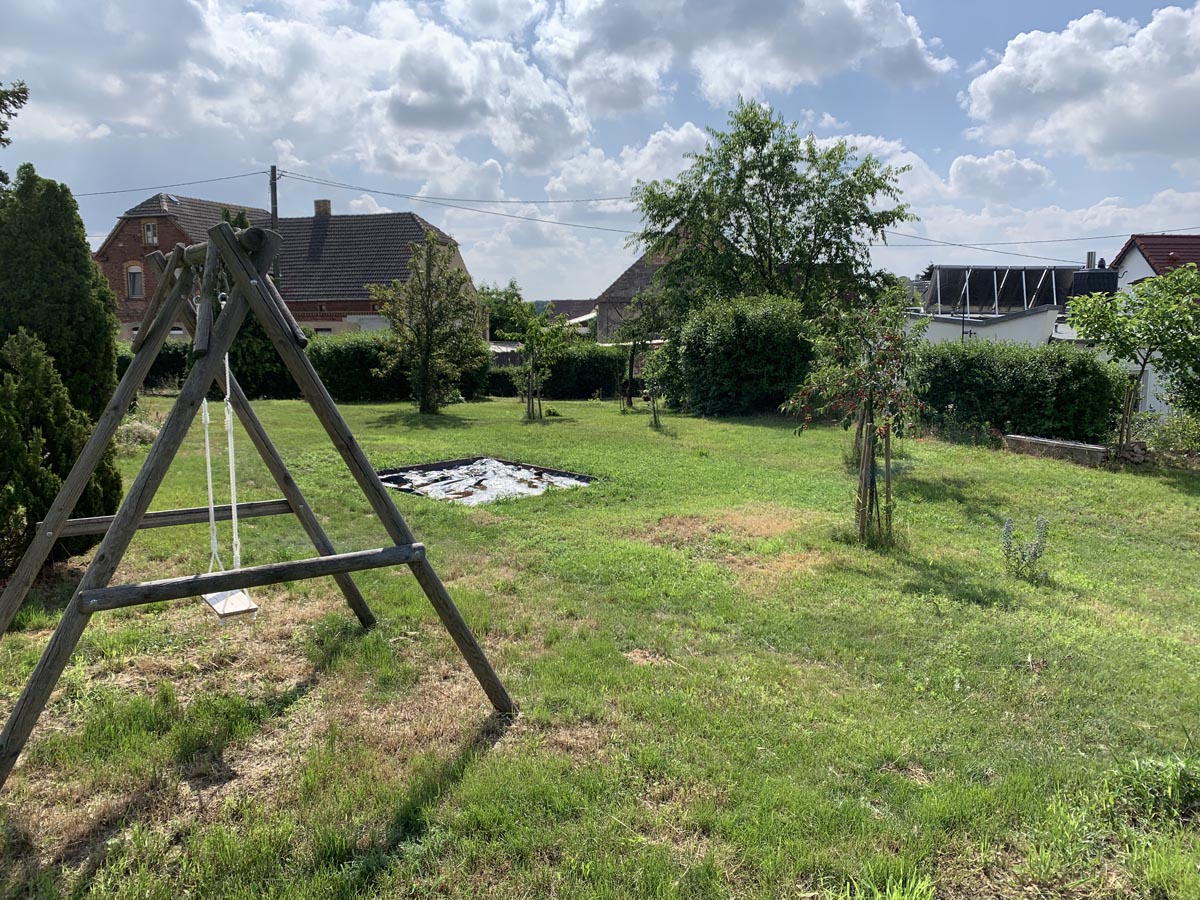 Stell dir vor, du bist umgeben von saftig grünen Wiesen und Feldern. Über eine Pflasterstraße bist du über Dommitzsch an diesen Ort gekommen, vorbei an den Bauernhöfen, Ziegen, Pferden … Und dann siehst du unser weißes Haus, eingewachsen in grünen Wein. Die Kinder spielen auf der Wiese, toben im Garten, buddeln im Sandkasten und schaukeln. Aus der Küche im Haus weht leckerer Kuchenduft, während die Großen die Zeit vergessen.
